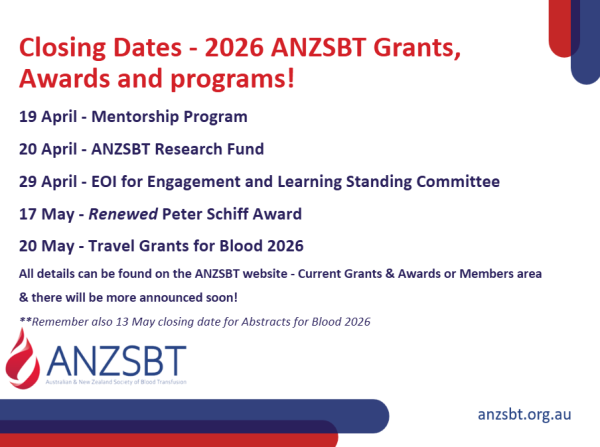 We sure have been busy at ANZSBT! So many Awards, Grants and Programs for our members to apply for. Here are the latest offerings with more to be announced soon!